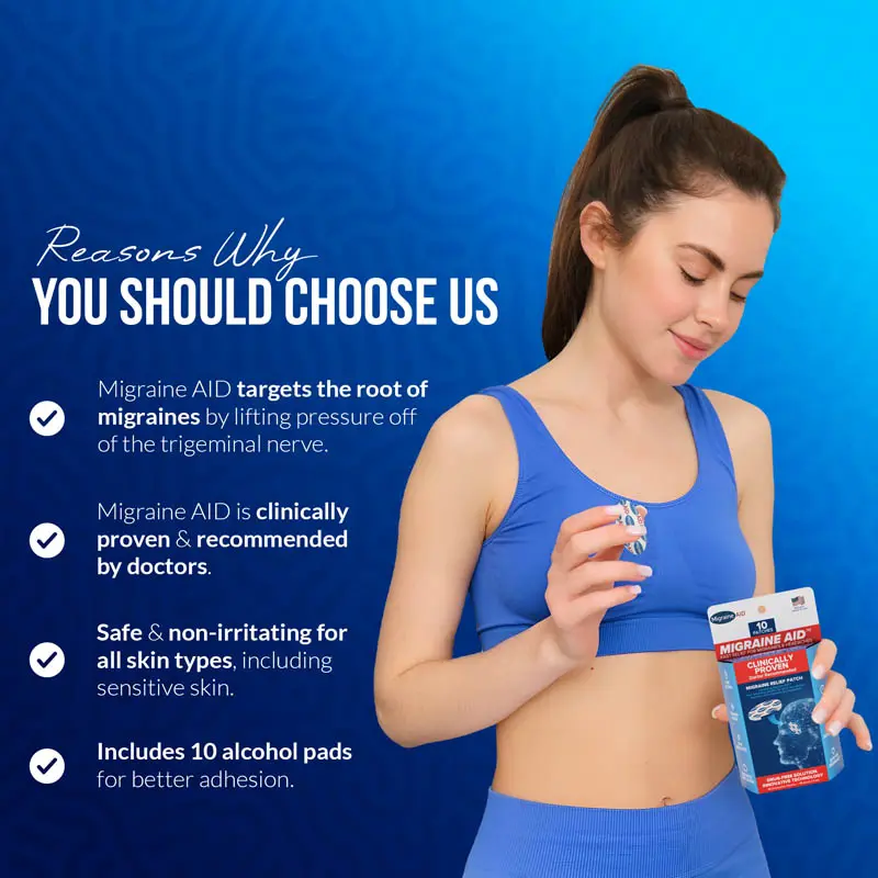 Choose Migraine AID for a natural, safe, and effective way to manage migraines and headaches. Experience long-lasting relief with our simple, easy-to-use migraine patches.